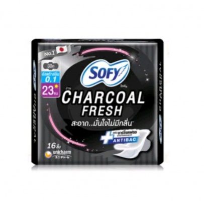 Ультратонкие прокладки с бамбуковым углем Sofy Charcoal 23 см с крылышками, 16 шт