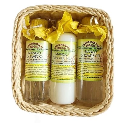 Подарочный набор Lemongrass House с ароматом манго — шампунь, кондиционер и гель для душа (Манговое блаженство) в подарочной корзинке