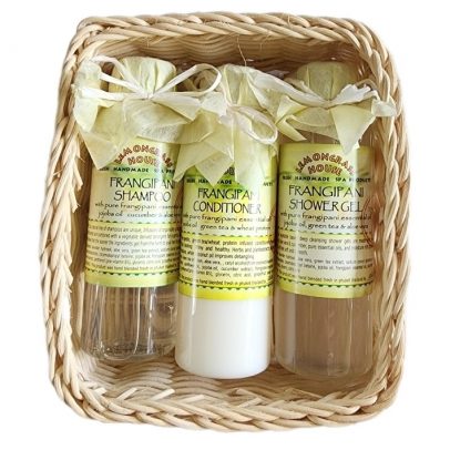 Подарочный набор Lemongrass House с ароматом франжипани (плюмерии) — шампунь, кондиционер и гель для душа (Нежность Франжипани) в подарочной корзинке