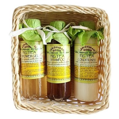 Подарочный набор Lemongrass House с ароматом Инжирный Чай — шампунь, кондиционер и гель для душа (Инжирное блаженство) в подарочной корзинке