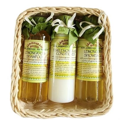 Подарочный набор Lemongrass House с ароматом Лемонграсс — шампунь, кондиционер и гель для душа (Свежесть Лемонграсса) в подарочной корзинке