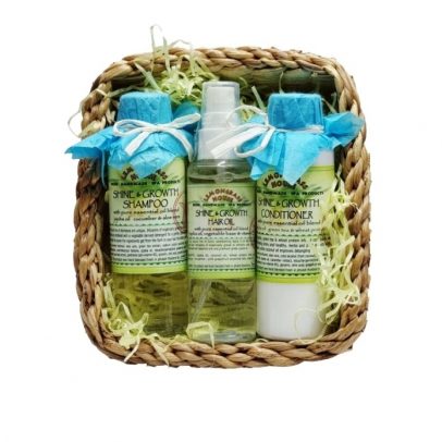 Подарочный набор для волос Lemongrass House “Блеск и Рост” Шампунь, Кондиционер и Масло для волос в подарочной корзинке