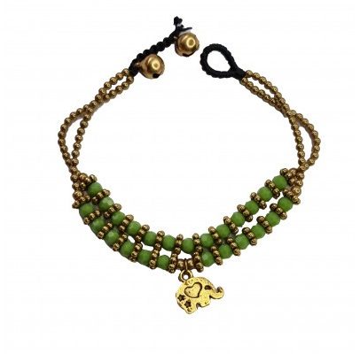 Браслет ручной работы с кулоном в виде слона (зелёный) Handmade Bracelet with Elephant Pendant (Green)