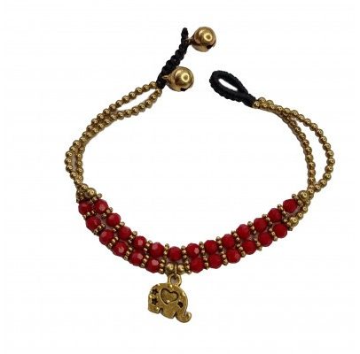 Браслет ручной работы с кулоном в виде слона (красный) Handmade Bracelet with Elephant Pendant (Red)