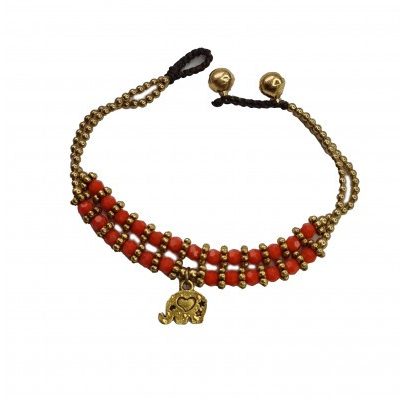 Браслет ручной работы с кулоном в виде слона (оранжевый) Handmade Bracelet with Elephant Pendant (Orange)