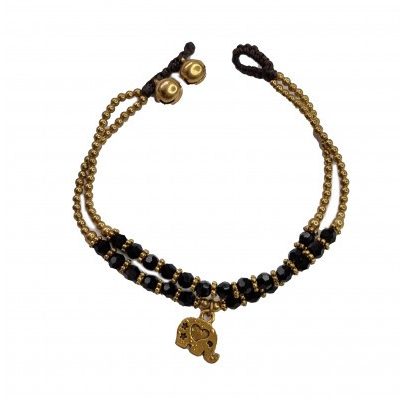 Браслет ручной работы с кулоном в виде слона (Черный) Handmade Bracelet with Elephant Pendant (Black)