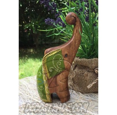 Деревянный слоник «Зеленый», Elephant Wood Green, 136 гр