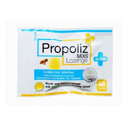 Леденцы с экстрактом прополиса от кашля и для облегчения боли в горле от Propoliz Mixs Lozenge 15 шт в пакетике