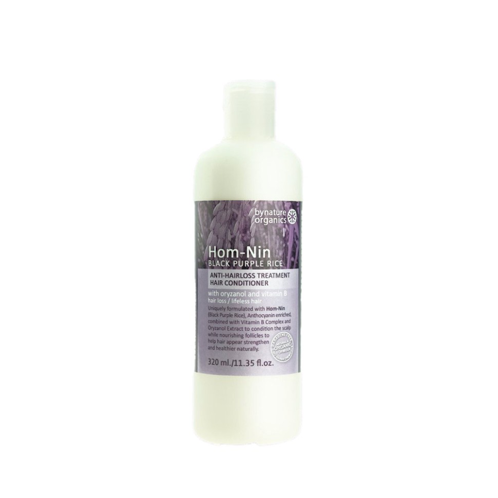 Лечебный кондиционер Hom-Nin (Черный Фиолетовый рис) от компании Bynature против выпадения волос, обогащен антоцианами, в сочетании с витамином группы В и экстрактом гамма-оризанол, эффективно питает волосы по длине, одновременно питая фолликулы. Волосы становятся более крепкими и здоровыми. Благодаря высокой концентрации антоцианов и проантоцианидина, Hom-Нин помогает предотвратить выпадение волос, усиливает регенерацию поврежденных фолликул. Стимулирует кровообращение кожи головы, обеспечивая блеск и прочность.