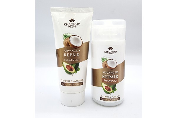 (НАБОР) Khaokho Talaypu Шампунь 60 мл и Кондиционер 50 мл с кокосовым маслом и маслом авокадо