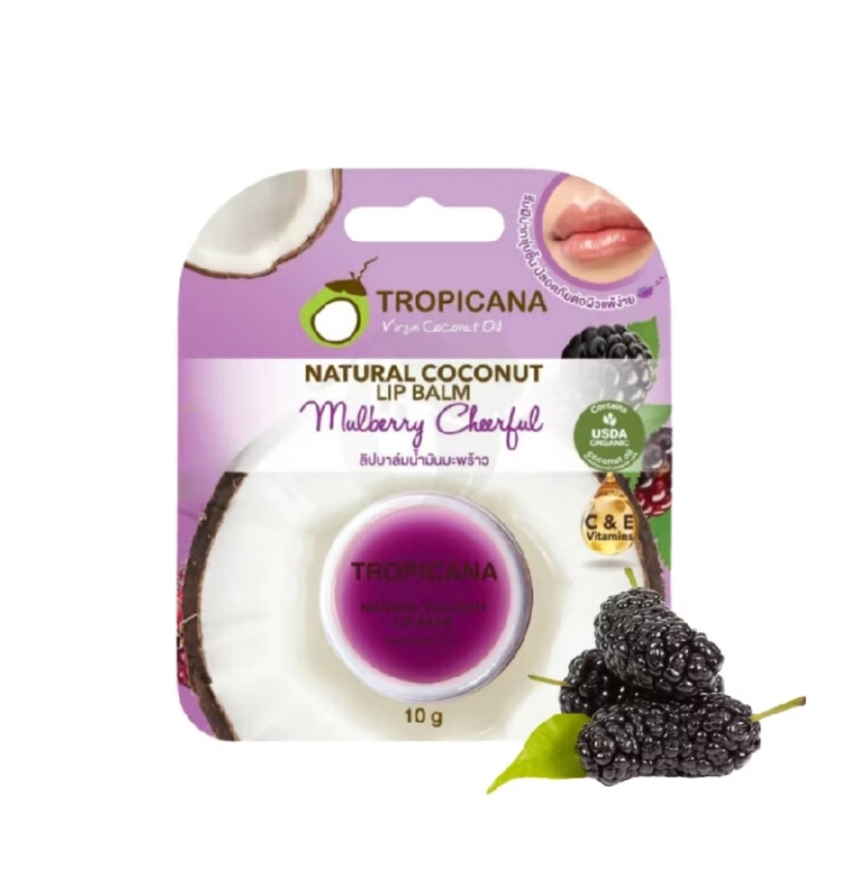 Бальзам разработан брендом Tropicana — известным тайским производителем натуральной косметики на основе кокосового масла. Лёгкая текстура бальзама комфортно распределяется по губам, не оставляя липкости. Приятный фруктовый аромат шелковицы делает ежедневный уход за губами более приятным.