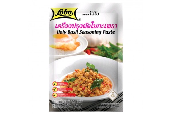 Паста Holy Basil от известного тайского производителя полуфабрикатов LOBO предназначена для приготовления блюда №1 в Таиланде – жареного рубленого мяса с тайским базиликом и специями. “Пад Капао” пользуется в Таиланде общенациональной любовью, это самое часто заказываемое блюдо в тайских кафе.
