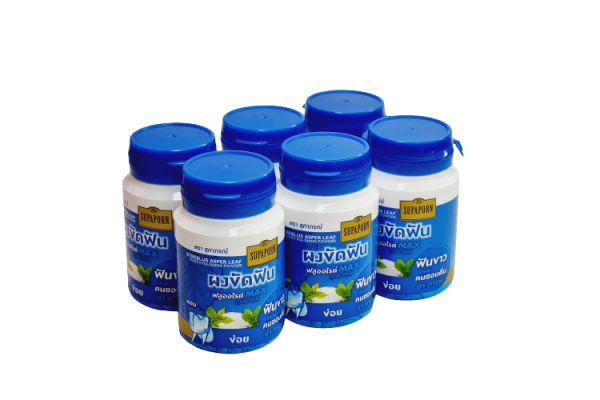 (УПАКОВКА 6 ШТ) Зубной порошок формула для удаления желтизны зубов от чая и кофе от Supaporn Streblus Asper Leaf Tooth Polishing Power 90g x 6pcs