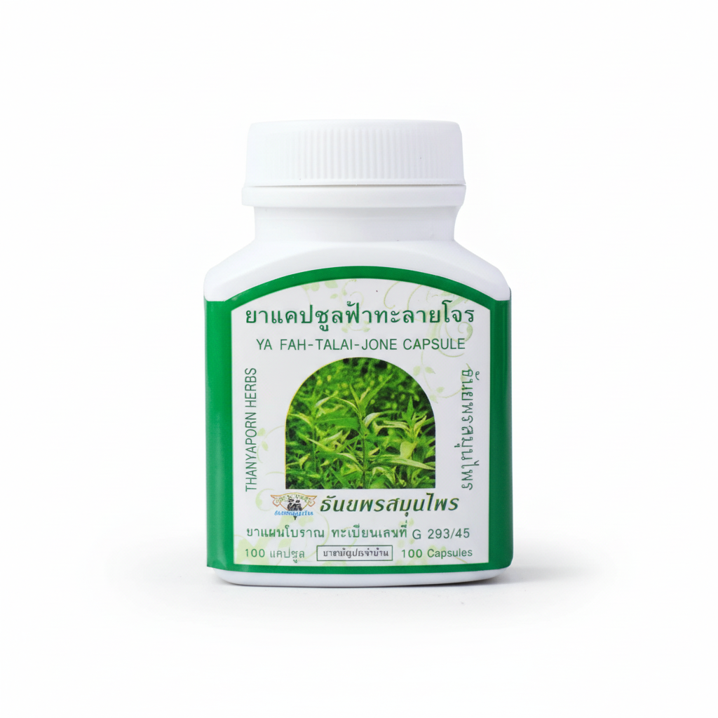 Fah Talai Jone (Фа Талай Джон) — одно из самых известных тайских травяных средств, широко применяемое при простуде, ослабленном иммунитете и сезонных инфекциях. В Таиланде эту траву называют «антибиотиком из природы»: экстракт обладает выраженными очищающими и укрепляющими свойствами, помогает организму быстрее восстановиться и поддержать его естественную защиту.